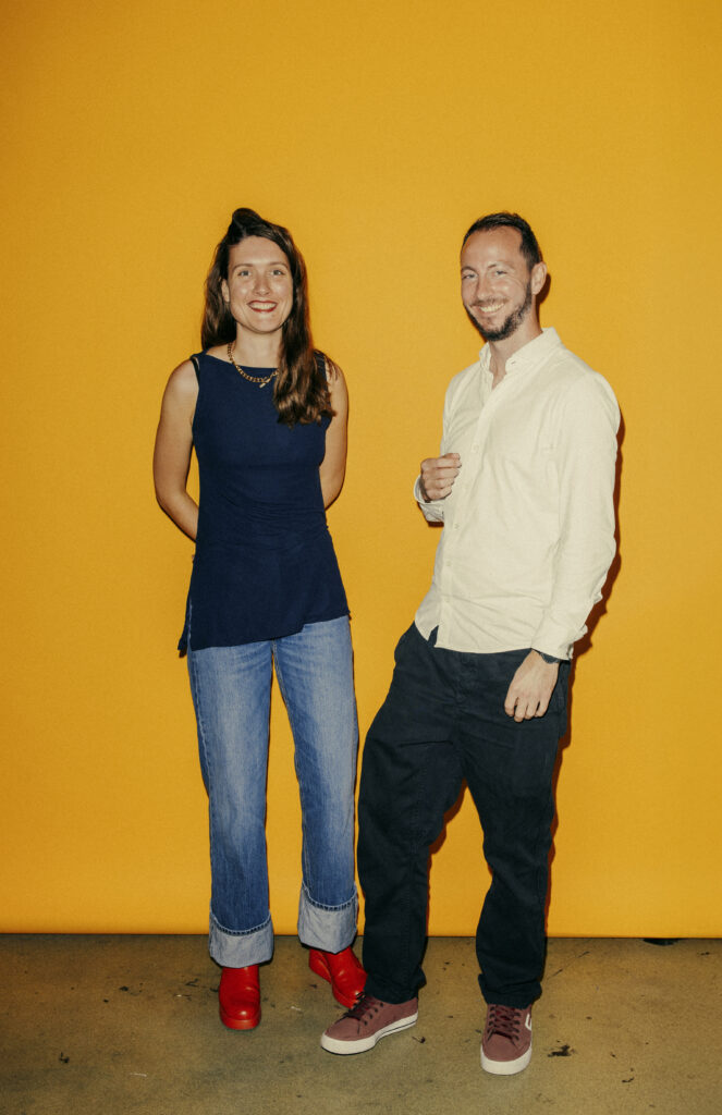 Optrædende på billederne: Amanda Linnea Ginman (ny kunstnerisk leder fra maj 2026) og Lasse Frank (adm. leder af Teatret Zeppelin).