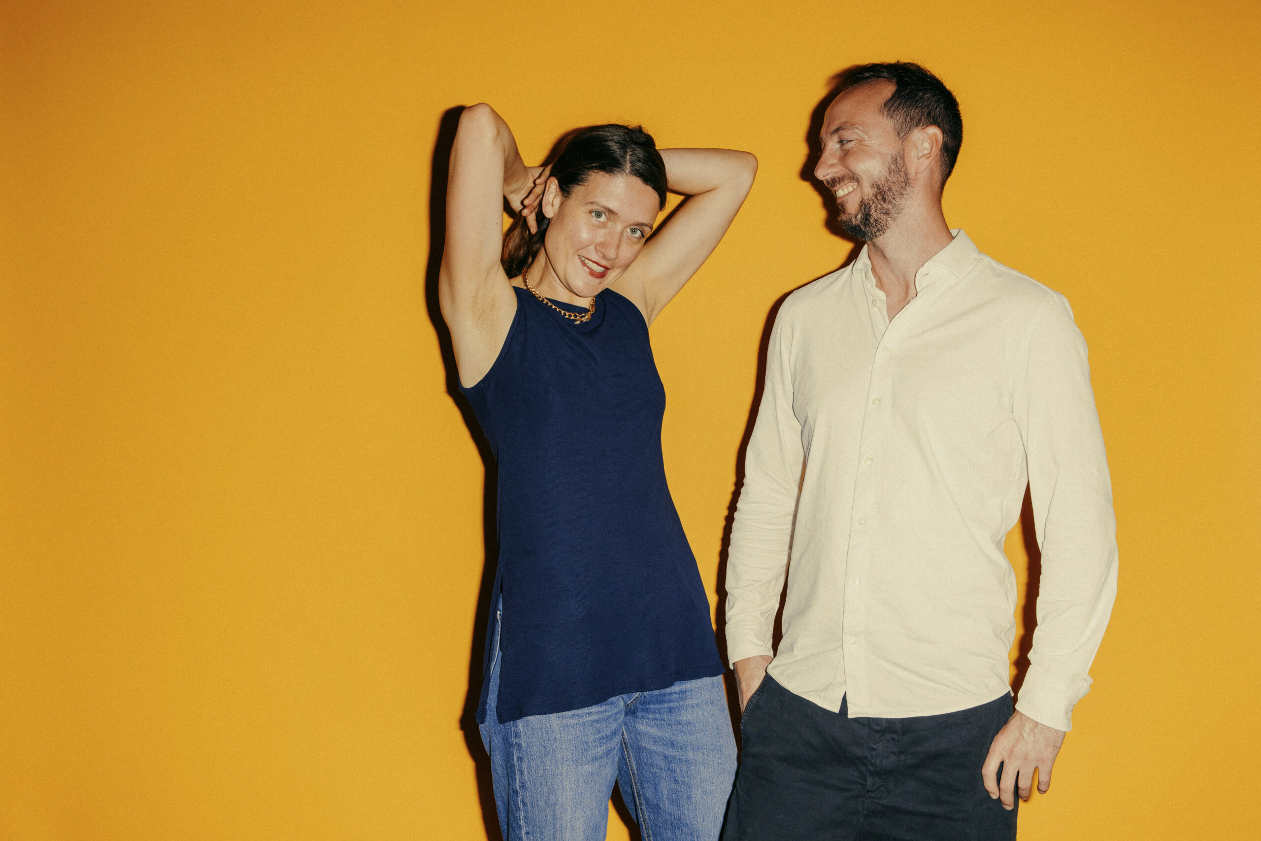 Optrædende på billederne: Amanda Linnea Ginman (ny kunstnerisk leder fra maj 2026) og Lasse Frank (adm. leder af Teatret Zeppelin).